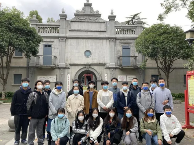 (潘勋勇老师带学生参观中共五大会址纪念馆)