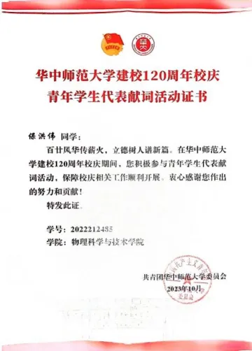 华中师范大学物理科学与技术学院 地址:湖北省武汉市洪山区珞喻路152号 联系电话:027-67867939 邮编:430079