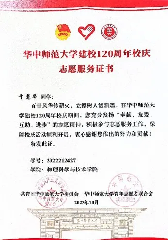 志愿服务火热进行,点亮热血青春初心。团支部成员累计志愿时长突破3500小时,人均志愿服务时长近100小时。近10名同学入选校庆志愿者队伍,为120周年校庆的顺利开展贡献属于2207团支部的青春力量。