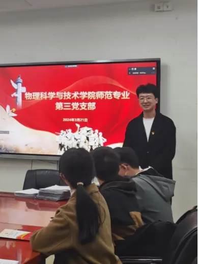 这三年来,刁宇轩忠诚向党,锚定人生航向,立志为党育人。从年级首批积极分子、发展对象和中共预备党员,再到转为正式党员,这一路初心不改、矢志不渝。在支部书记王棣老师和诸多学长学姐的帮助下,刁宇轩在一次次活动中历练成长,从最开始紧张地主持支部组织生活会,再到从容地领学主题教育党课,无论是大型活动还是日常工作,刁宇轩在奋斗中收获成长,在奉献中品味幸福。