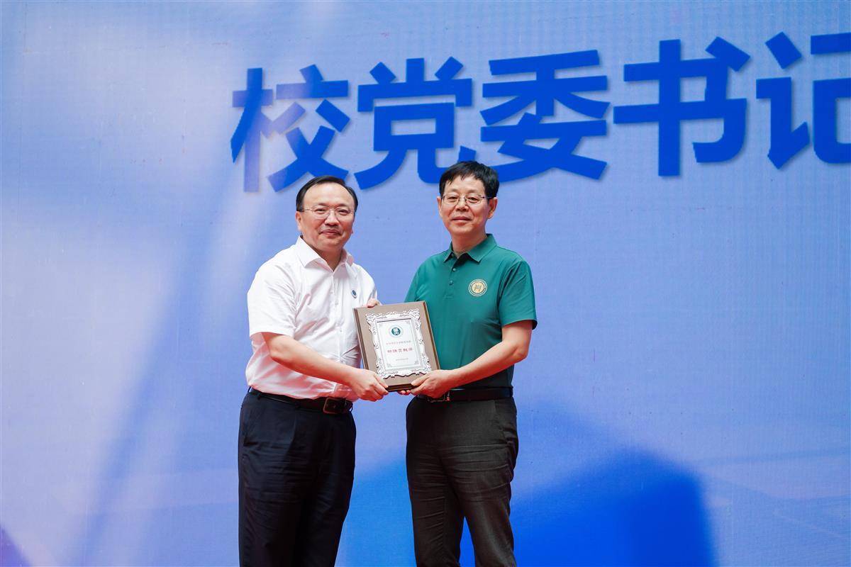 华中师范大学党委书记夏立新颁发捐赠奖牌